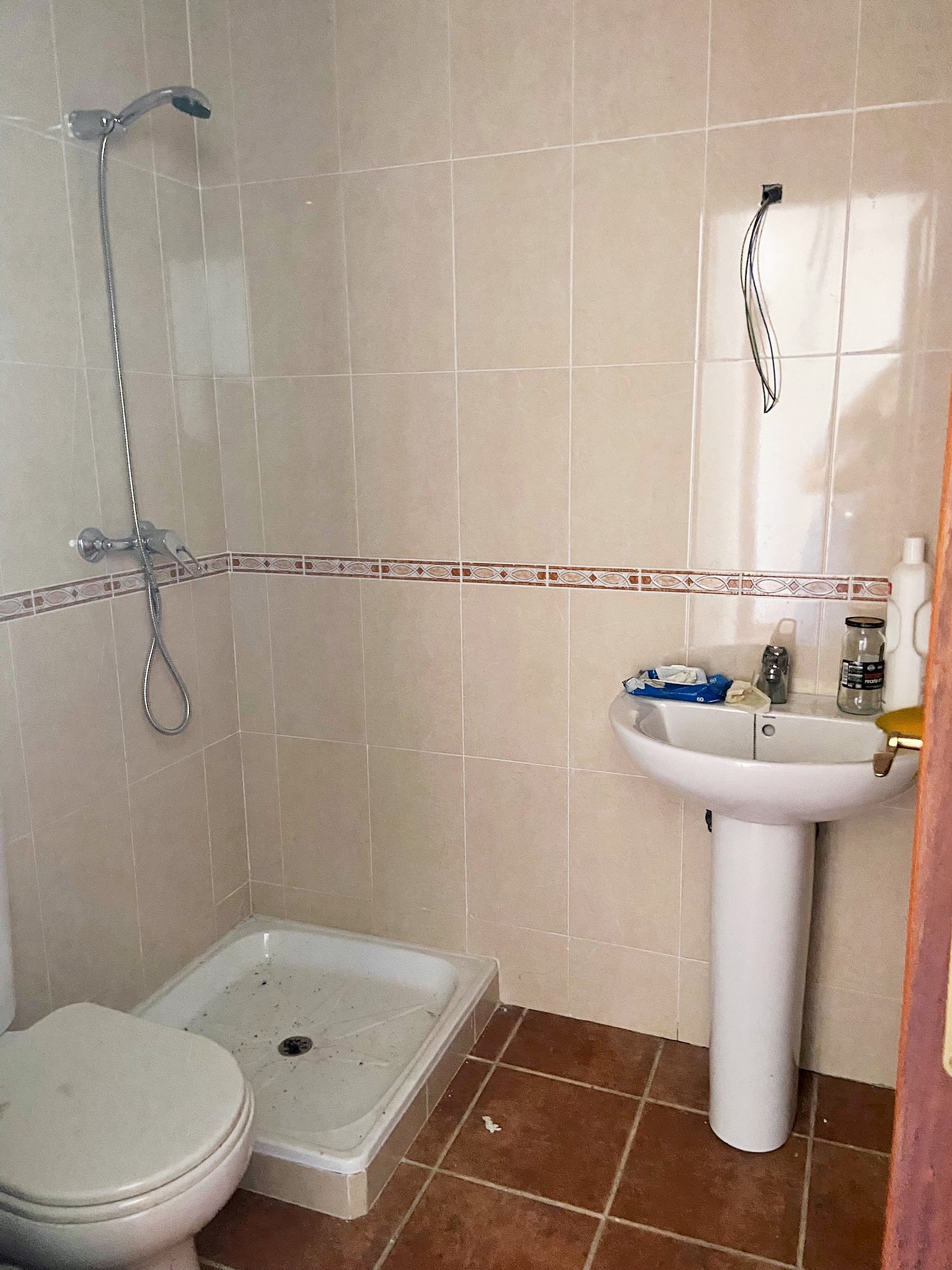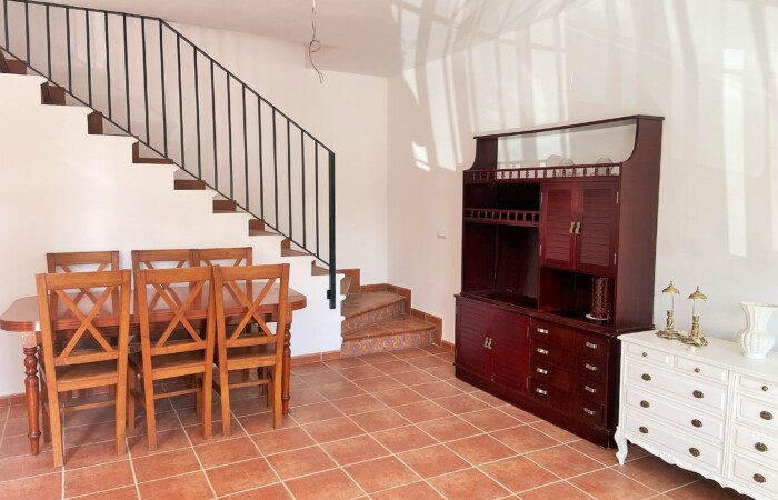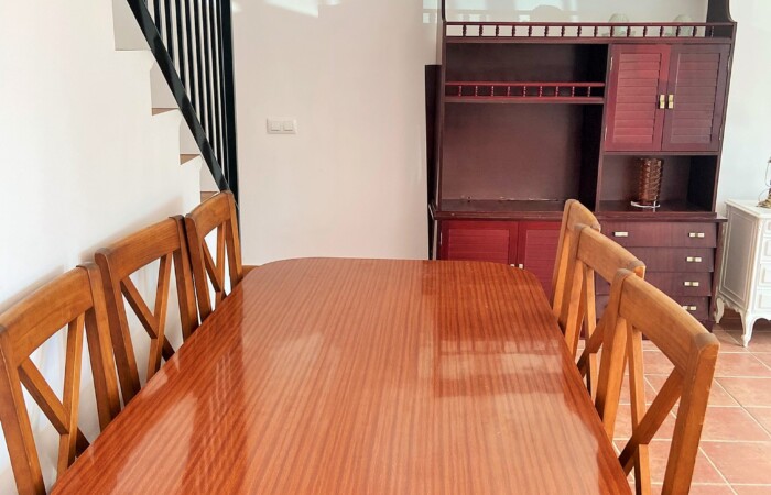 Se compone en planta baja de un estupendo salón comedor con chimenea, ein Schlafzimmer, Badezimmer mit Dusche-Platte, trastero y amplia cocina con salida al patio.