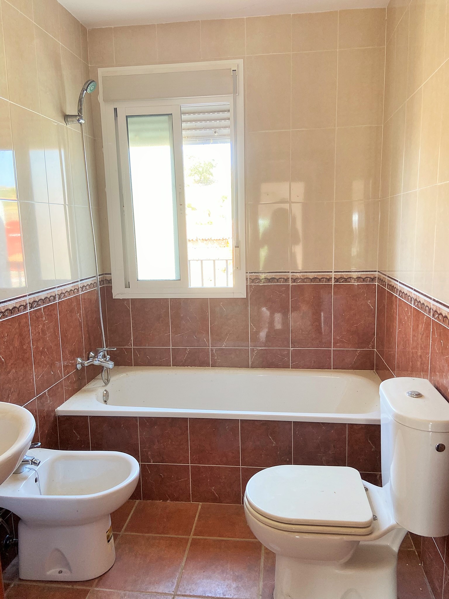 Im Obergeschoss, 3 Schlafsäle, el principal con gran terraza, y los otros dos dormitorios con balcón, y para terminar esta planta tenemos, amplio cuarto de baño completo.
